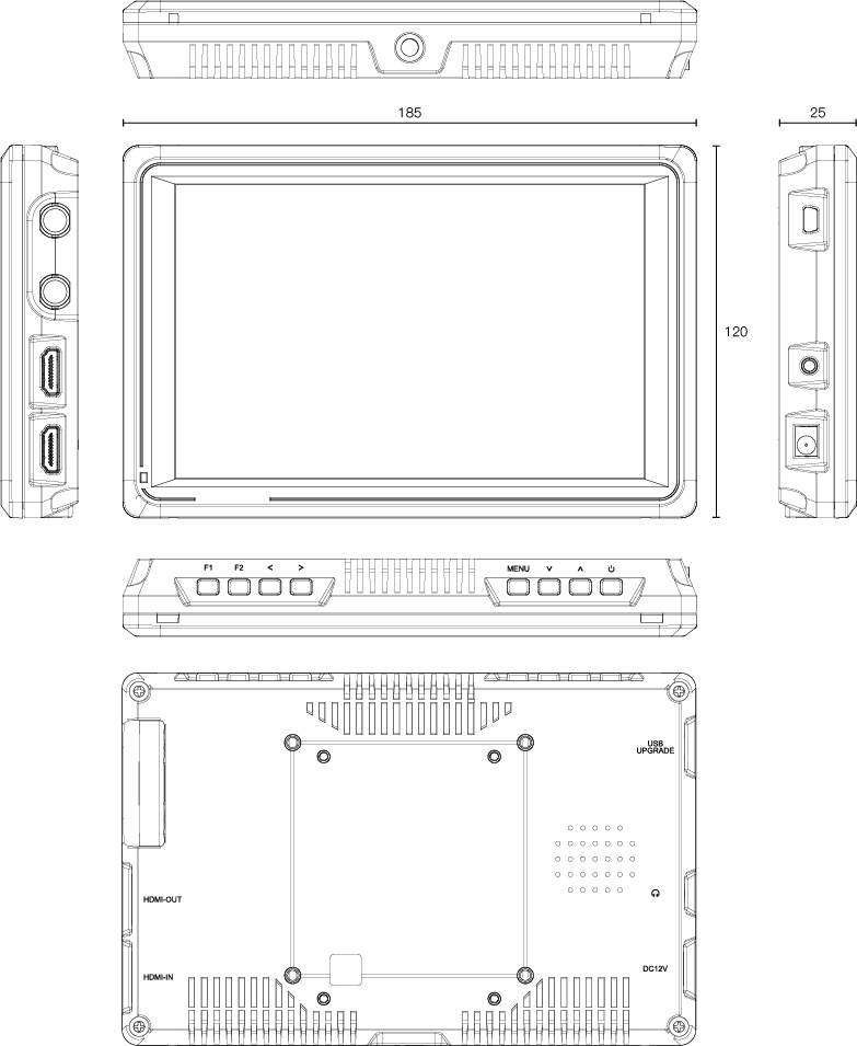 FEELWORLD FW279 provides 7" an 8-bit IPS screen with 1920x1200 resolution, 323ppi pixel density, professional color calibration to overcome natural LCD color drift. The FW279 displays sharper images, better text clarity and color reproductions regardless of your shooting conditions. The FW279 has a wide viewing angle so that everyone on set can review the action.